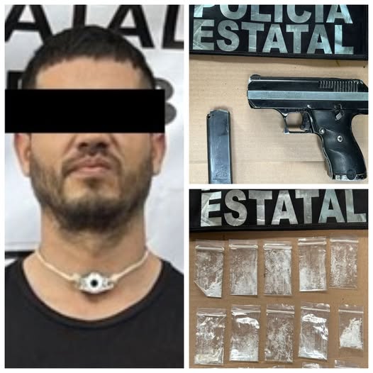 Hermosillo, Sonora; 31 de marzo de 2026.- Con la estrategia de seguridad y prevención del delito que realiza la Policía Estatal de Seguridad Pública (PESP) en la ciudad de Hermosillo, se logró la detención de una persona en posesión de arma de fuego y narcótico.