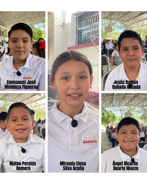 San Pedro de la Cueva, Sonora; 9 de abril de 2026.- Estudiantes de primaria de San Pedro de la Cueva agradecieron al gobernador Alfonso Durazo por la entrega de becas del programa Sonora de Oportunidades, ya que con este estímulo económico podrán seguir adelante con sus estudios.