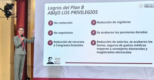 La Presidenta de México, Claudia Sheinbaum Pardo, destacó este viernes “seis grandes logros” que se consiguieron tras la aprobación del “Plan B” de la Reforma Electoral que ya fue avalado por 20 congresos estatales.
