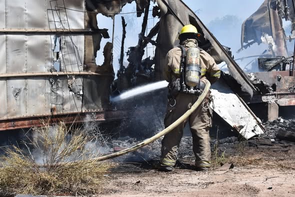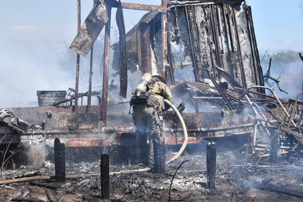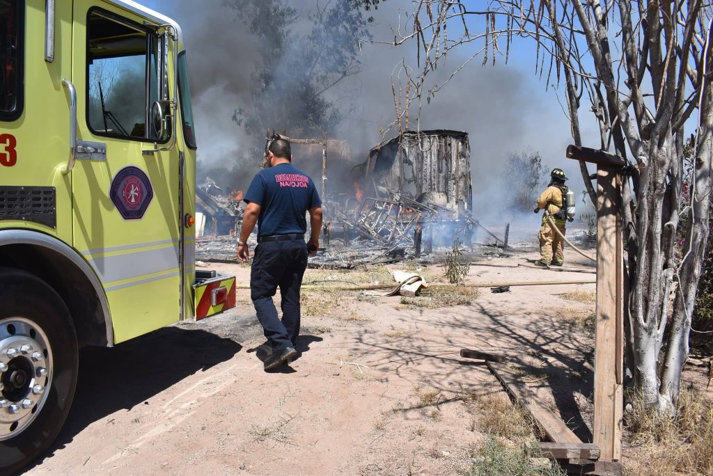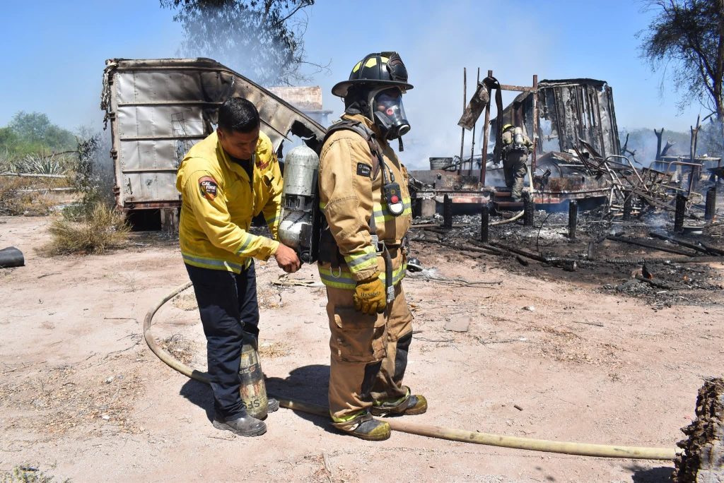 Elementos de Bomberos Navojoa y Protección Civil Municipal atendieron el reporte de un incendio en la caja de un tráiler en la comunidad de Sapochopo, San Ignacio.