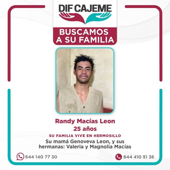 Si tienes información que ayude a localizar a sus familiares, comunícate a: