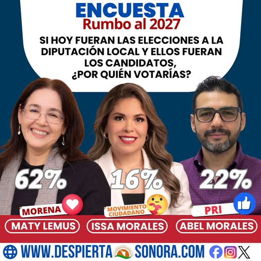 La líder del Sindicato Único de Trabajadores al Servicio del Ayuntamiento de Cajeme (SUTSAC) obtuvo un sólido 62% de las preferencias, muy por encima de sus contrincantes. En segundo lugar aparece Abel Morales con un 22%, mientras que Issa Morales se ubica en tercer sitio con un 16%.