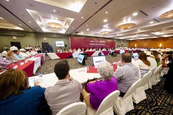 Hermosillo, Sonora; 20 de abril de 2026.- Con el objetivo de dar respuesta a las demandas esenciales de la población en materia de obra pública y trabajar en una mayor dispersión de recursos financieros en favor de las comunidades y localidades, el gobernador Alfonso Durazo Montaño encabezó la firma del convenio para el programa Transforma Sonora en Apoyo a los Municipios.